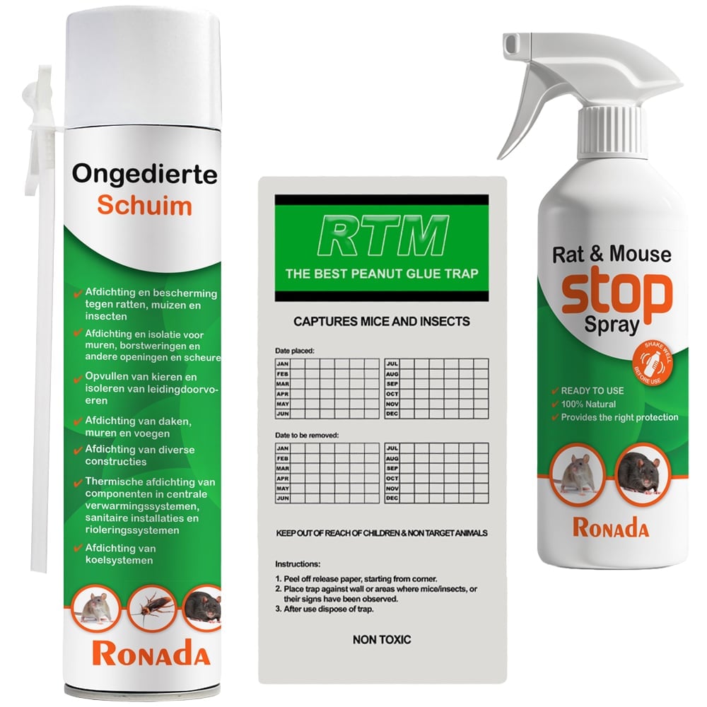 De muizen die al binnen zijn, worden doelgericht gevangen met de 10 Muizen lijmplanken Trapper RTM Pinda. Deze professionele lijmplanken bevatten een krachtige pinda lokstof die muizen onweerstaanbaar aantrekt. Dankzij de sterke kleeflaag is ontsnappen vrijwel onmogelijk. Dit zorgt voor een snelle en gecontroleerde vermindering van het aantal muizen in de ruimte.