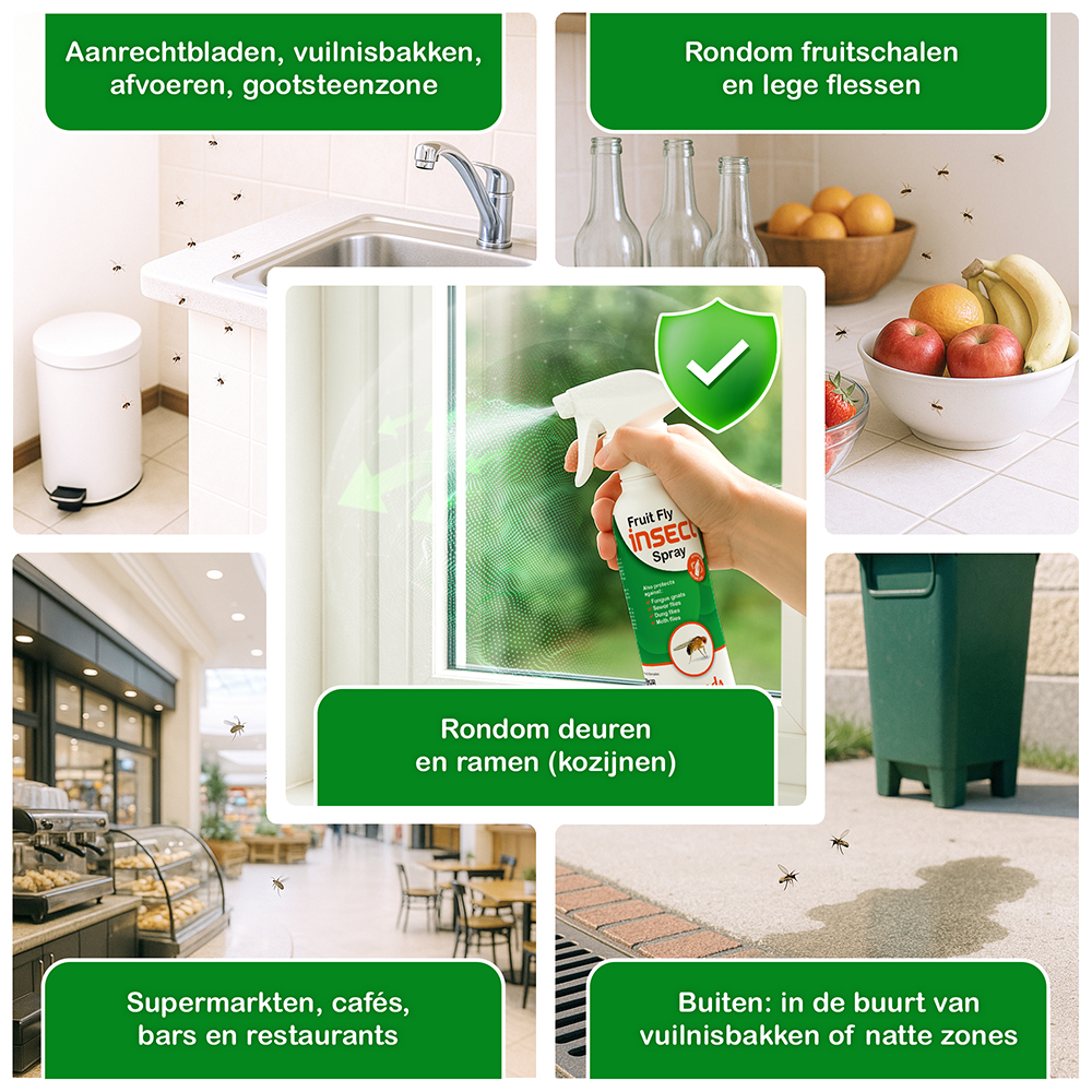 De Ronada Spray tegen Fruitvliegjes is niet alleen geschikt voor thuisgebruik, maar ook ideaal voor bedrijven. In supermarkten, cafés, restaurants en andere horecagelegenheden helpt hij om de hygiëne te waarborgen en ongewenste insecten weg te houden. Omdat hij volledig natuurlijk is, kunt u hem probleemloos toepassen in de buurt van voedsel en gasten.